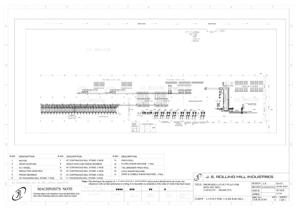 LAYOUT FOR 1+16 RE-BAR MILL