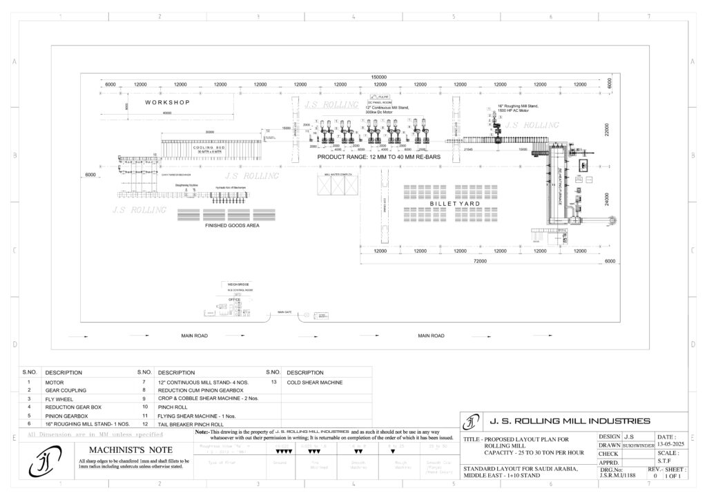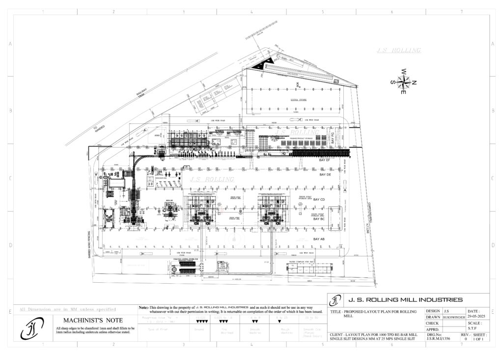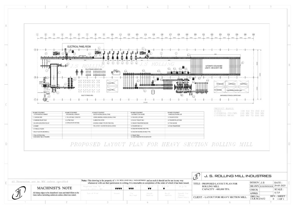 LAYOUT PLAN FOR 1000 TPD RE-BAR MILL SINGLE SLIT DESIGN, 8MM AT 25 MPS SINGLE SLIT