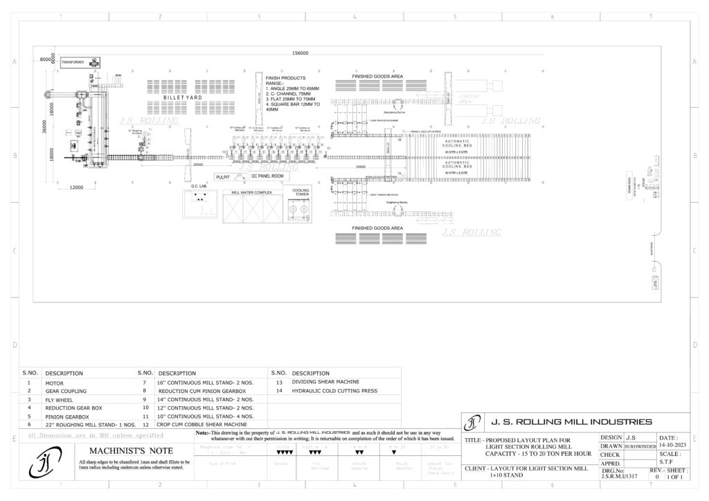 LAYOUT PLAN FOR 1+14 ROLLING MILL