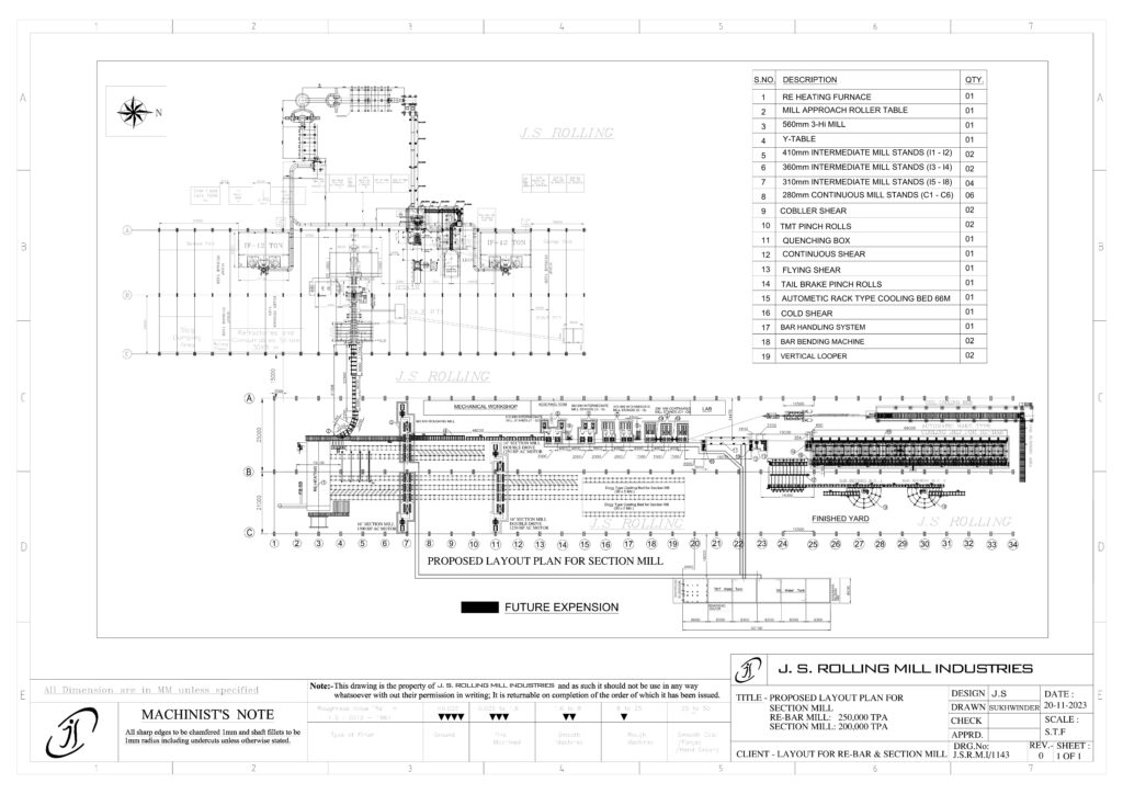 LAYOUT FOR RE-BAR & SECTION MILL